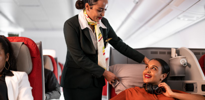 Upgrade to Business Class with miles and take your flying experience to the next level.